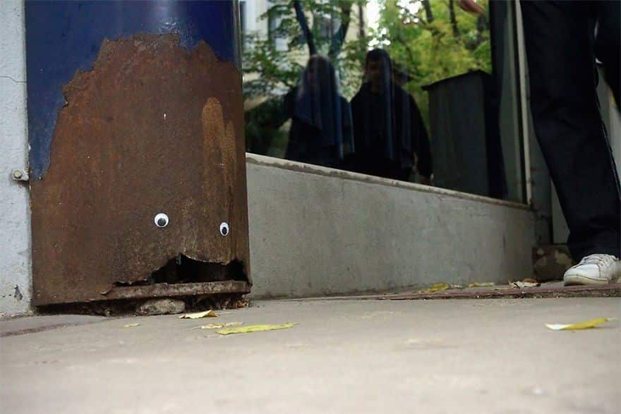 Et cet art est maintenant réalisé en Bulgarie grâce à l’artiste Vanyu Krastev, et comme vous pouvez le constater dans ses oeuvres étonnantes, il a certainement l’oeil parfait pour cette tendance du eyebomb ! Allant des poteaux aux lampadaires en passant par les arbres et des taches sur le sol, l’artiste prouve que même les choses les plus banales peuvent devenir intéressantes avec deux yeux et une bonne dise d’imagination ! Découvrez quelques-unes de ses créations ci-dessous !