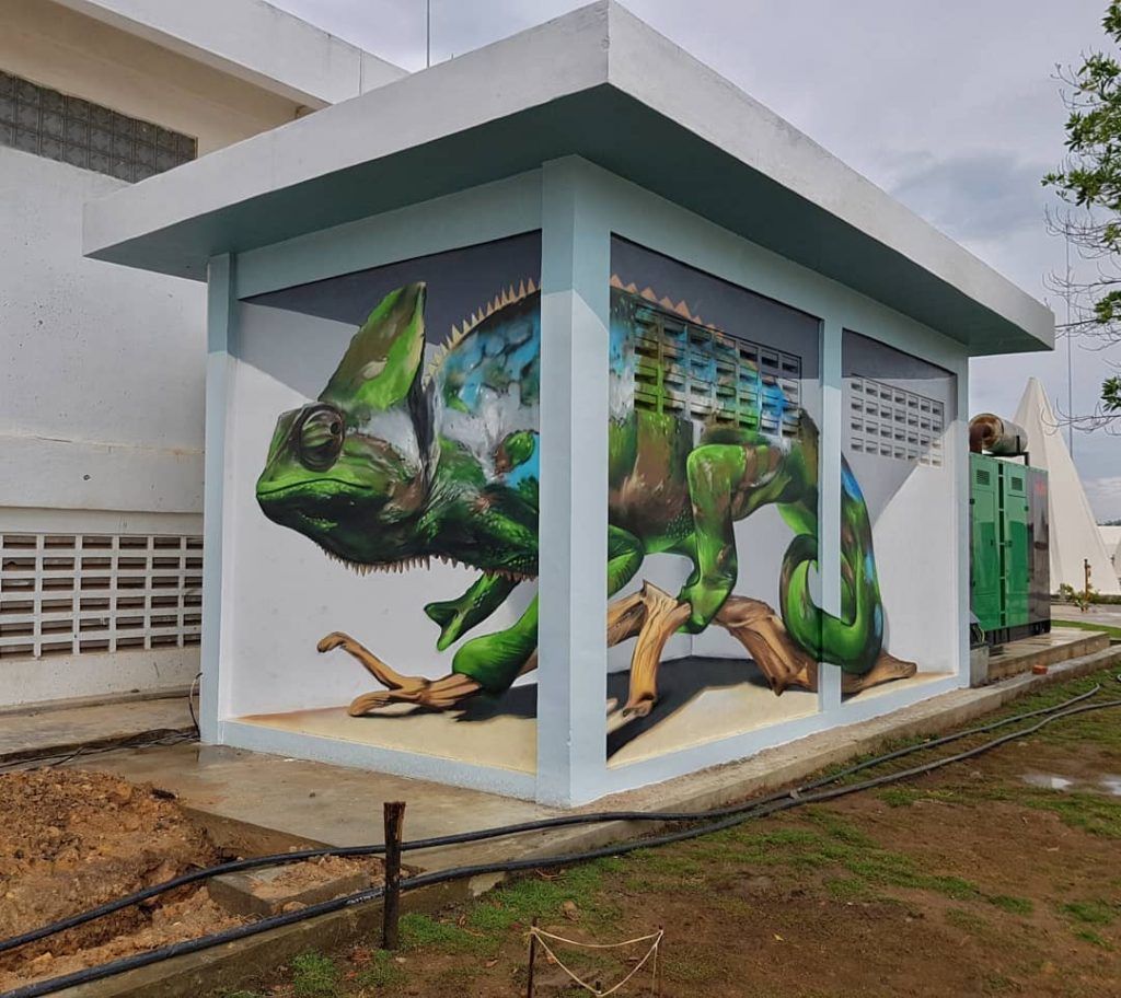 Un graffeur, Odeith, a transformé une structure de ciment ordinaire en une peinture extraordinaire .