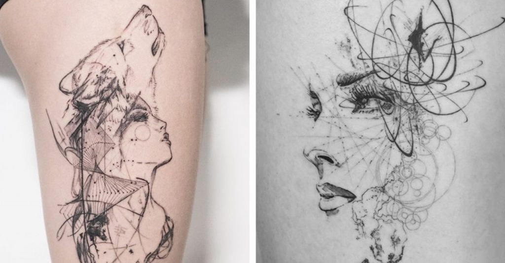 Le travail graphique et abstrait du tatoueur londonien Mowgli est immédiatement reconnaissable. En utilisant des symboles scientifiques, avec des lignes et des points délicats, et en les mélangeant avec des croquis figuratifs, il s’est taillé un chemin unique dans le monde du tatouage.