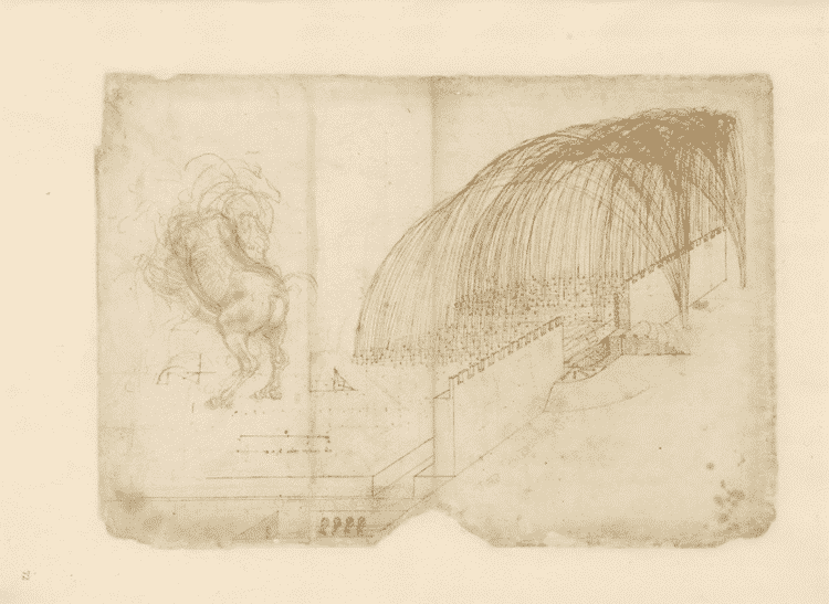 Vous pouvez explorer la version numérisée complète du Codex Atlanticus de Da Vinci ici . Le site Web est en italien, mais vous pouvez cliquer sur «EN» pour l’anglais en bas à droite de l’écran.