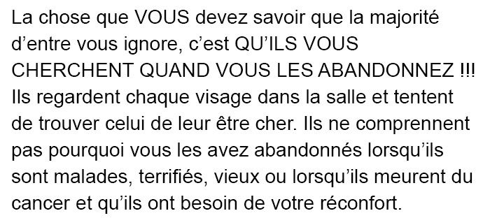 Hillcrest Veterinary Hospital a aussi posté un message écrit par un vétérinaire qui encourage les gens à ne jamais abandonner leurs animaux lors de leurs derniers instants.