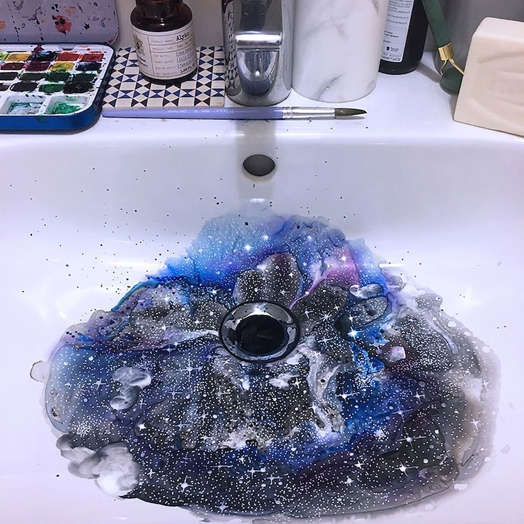 L’artiste italienne Marta Grossi utilise son évier comme toile pour faire de magnifiques aquarelles.