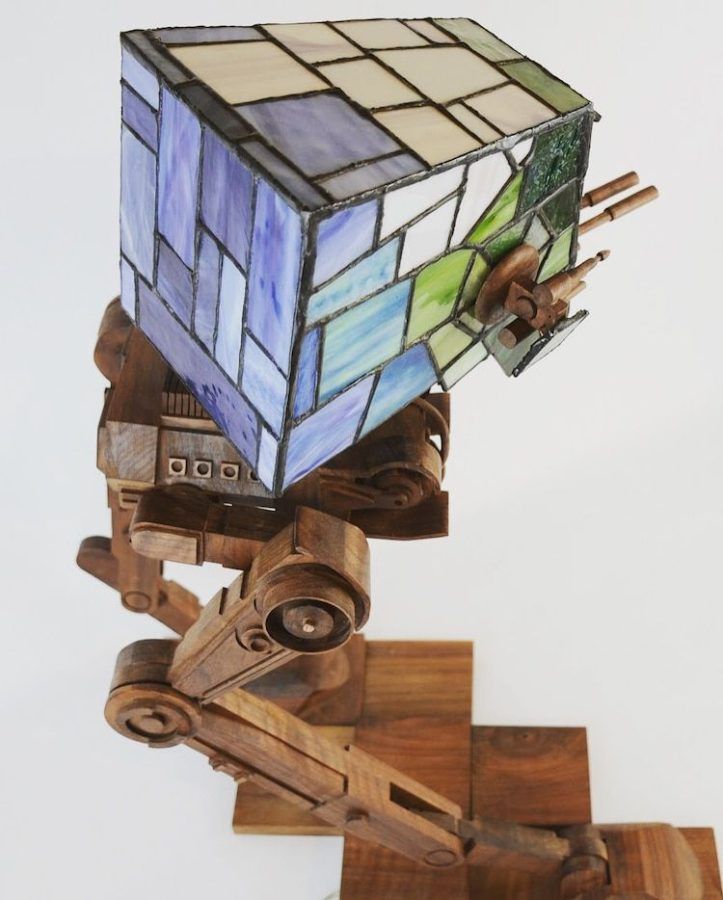 L’artisan façonne les navires et les droïdes rendus célèbres dans le classique de la science-fiction en lampes et sculptures en bois aux accents de verre colorés. Les ailes d’une navette impériale, par exemple, sont habillées de tons verts tourbillonnants tandis que le corps d’une lampe AT-AT a une sensation de feu grâce à l’ajout du vitrage orange et rouge. Les résultats rappellent que lorsque l’artisanat est combiné à la culture pop, les résultats vous surprendront et vous charmeront.