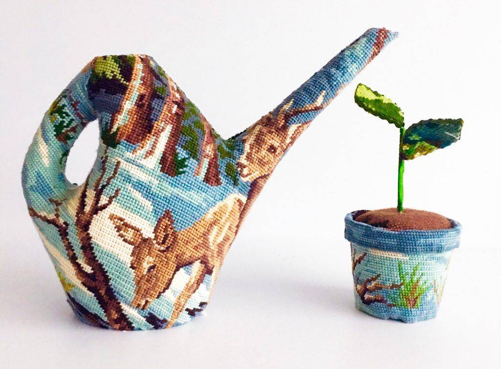 Des objets de la maison oubliés revêtus de points de croix par Ulla Stina-Wikander