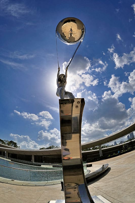 The Force of Nature est une série de sculptures de l’artiste Lorenzo Quinn qui représentent une femme faisant tourner le monde avec un morceau de tissu.