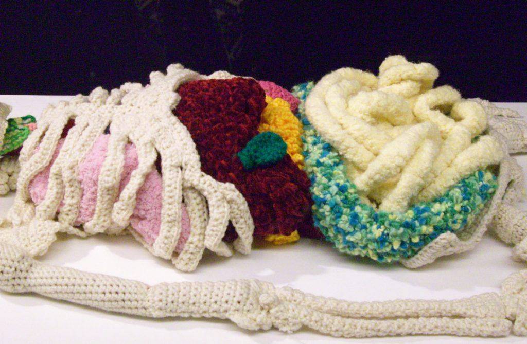 L’œuvre a été créée en 2005 à partir de fil de laine et comprend tout, du cœur tendre au crochet aux dix phalanges creuses. Après avoir travaillé pendant quatre mois sur le squelette et quatre mois sur les organes, le travail final a été présenté sur un véritable gurney mortuaire.