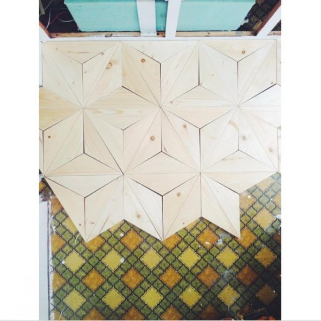 Mandi a décidé de remplacer le sol un peu vieillot par un parquet en forme de triangle.