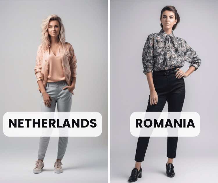 Bien que les images montrent une certaine uniformité en termes de types de corps, avec des femmes majoritairement minces, l’IA prend en compte certaines différences ethniques en fonction des pays. Cela souligne le fait que l' »intelligence » de l’IA, dérivée des données fournies par les humains, reflète les perspectives humaines.